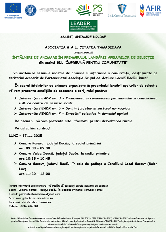 Anuntul Intalnirilor de animare din 17.11.2025