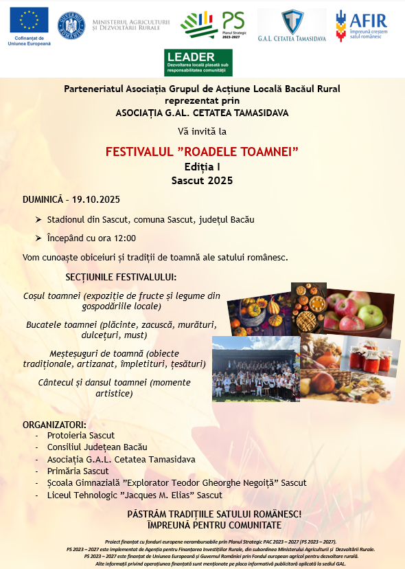 Festivalul ”ROADELE TOAMNEI” Ediția I, 19 octombrie 2025, Localitatea Sascut, Județul Bacău